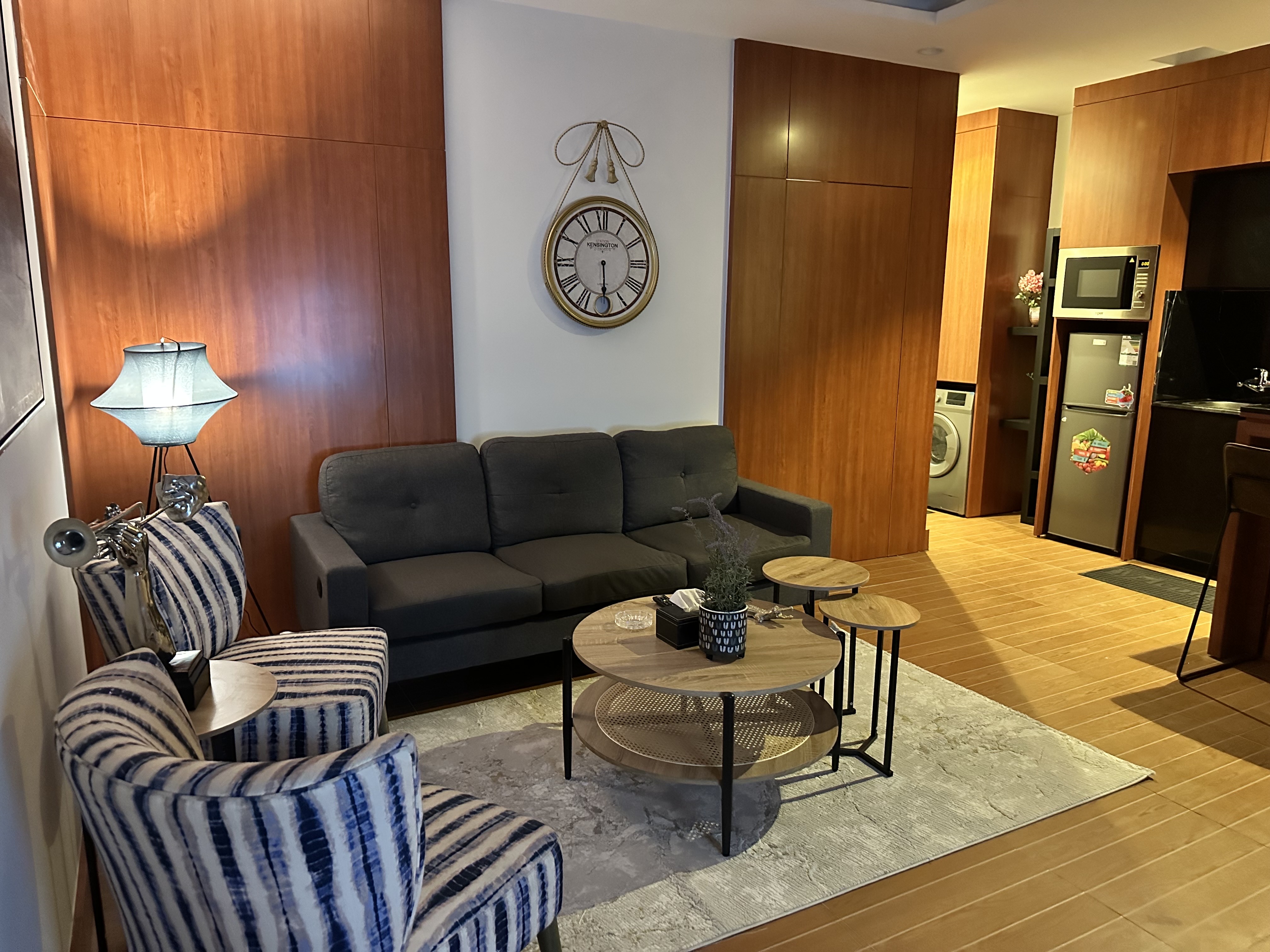 استمتع باقامتك في شقة فاخرة بأثاث أنيق ومميز في شمال مدينة الرياض. تقع الشقة بين مخرج 5 و 6 بجانب طريق الدائري الشمالي لذلك يمكنك الوصول بسهولة إلى المقاهي والمطاعم ومراكز التسوق. مكونه من صالة جلوس وغرفة نوم ودورة مياة، مجهزة بالكامل بأثاث وديكورات فاخرة . - يبعد عن المطار 20 دقيقة . - يبعد عن بوليفارد الرياض 15 دقايق. - يبعد عن مركز الملك عبدالله المالي 5 دقائق. - يبعد عن مدينة وندر وينترلاند الترفيهية 10دقائق.