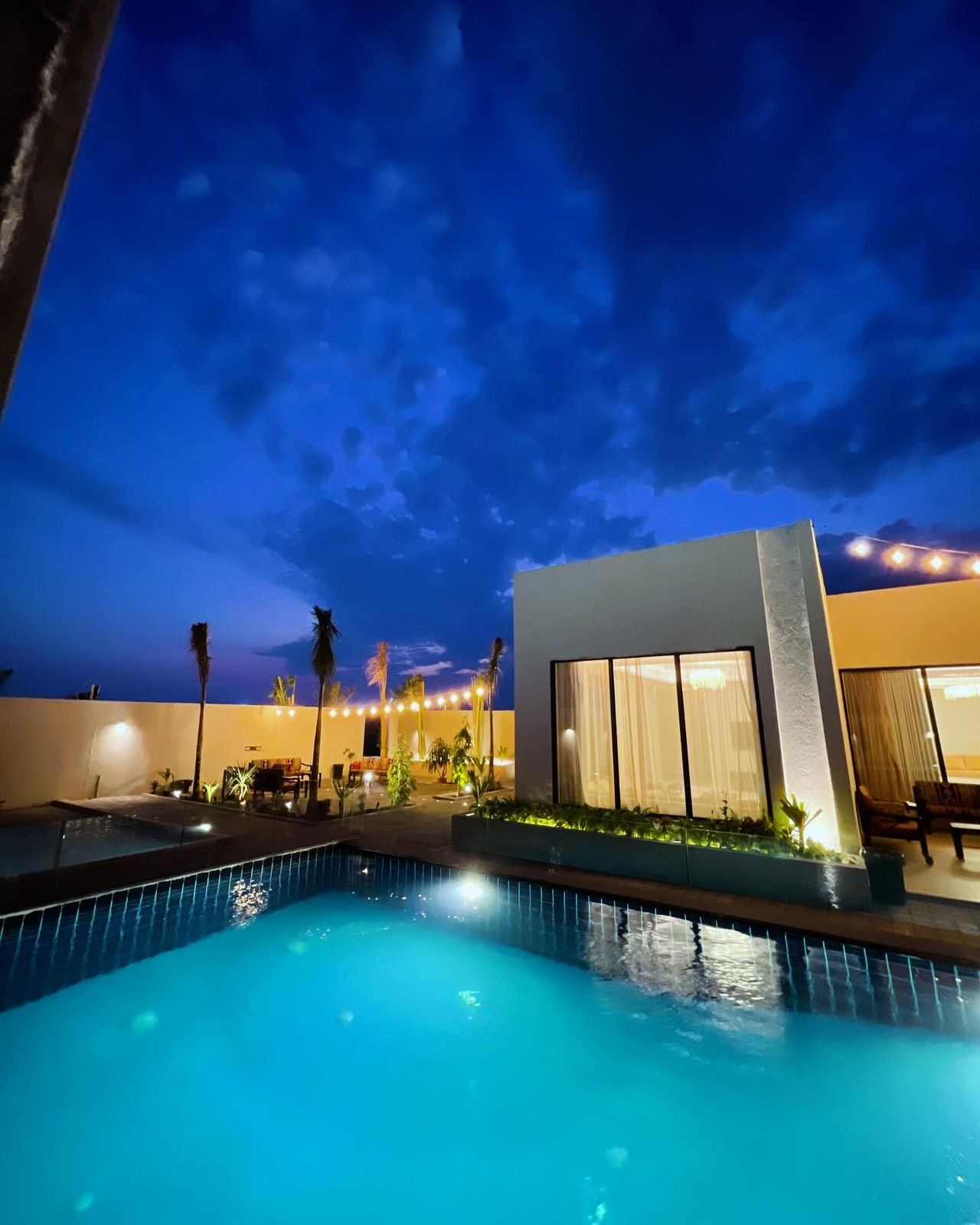 شاليه فاخر بتصميم عصري وخصوصية عالية استمتع بأجواء الراحة والرفاهية في هذا الشاليه المميز، المصمم بعناية ليوفر تجربة إقامة مثالية للعائلات والمجموعات: • قسم النساء: • صالون واسع يتسع لأكثر من 20 شخص • دورة مياه مستقلة ومغاسل أنيقة • جلسات خارجية مخصصة للنساء بإطلالة جميلة • قسم الرجال: • مجلس فسيح يتسع لأكثر من 20 شخص • مطبخ مجهز • دورة مياه ومغاسل • جلسات خارجية مخصصة للرجال • خصوصية تامة بين القسمين • غرف النوم: • غرفتان ماستر فاخرتان، كل غرفة مزودة بدورة مياه خاصة • إغلب الغرف مطله على المسبح • صالة معيشة مريحة مع مطبخ مفتوح بتصميم عصري • المرافق الترفيهية: • مسبح كبير بنظام Overflow مع شلال جداري رائع • مروش خارجي ودورة مياه مخصصة للمسبح • ملعب كرة طائرة مجهز • مزايا إضافية: •امكانية توفير خيل لتصوير او الركوب حسب الرغبه • موقف خاص للسيارات • تصميم يوفر أقصى درجات الخصوصية والراحه