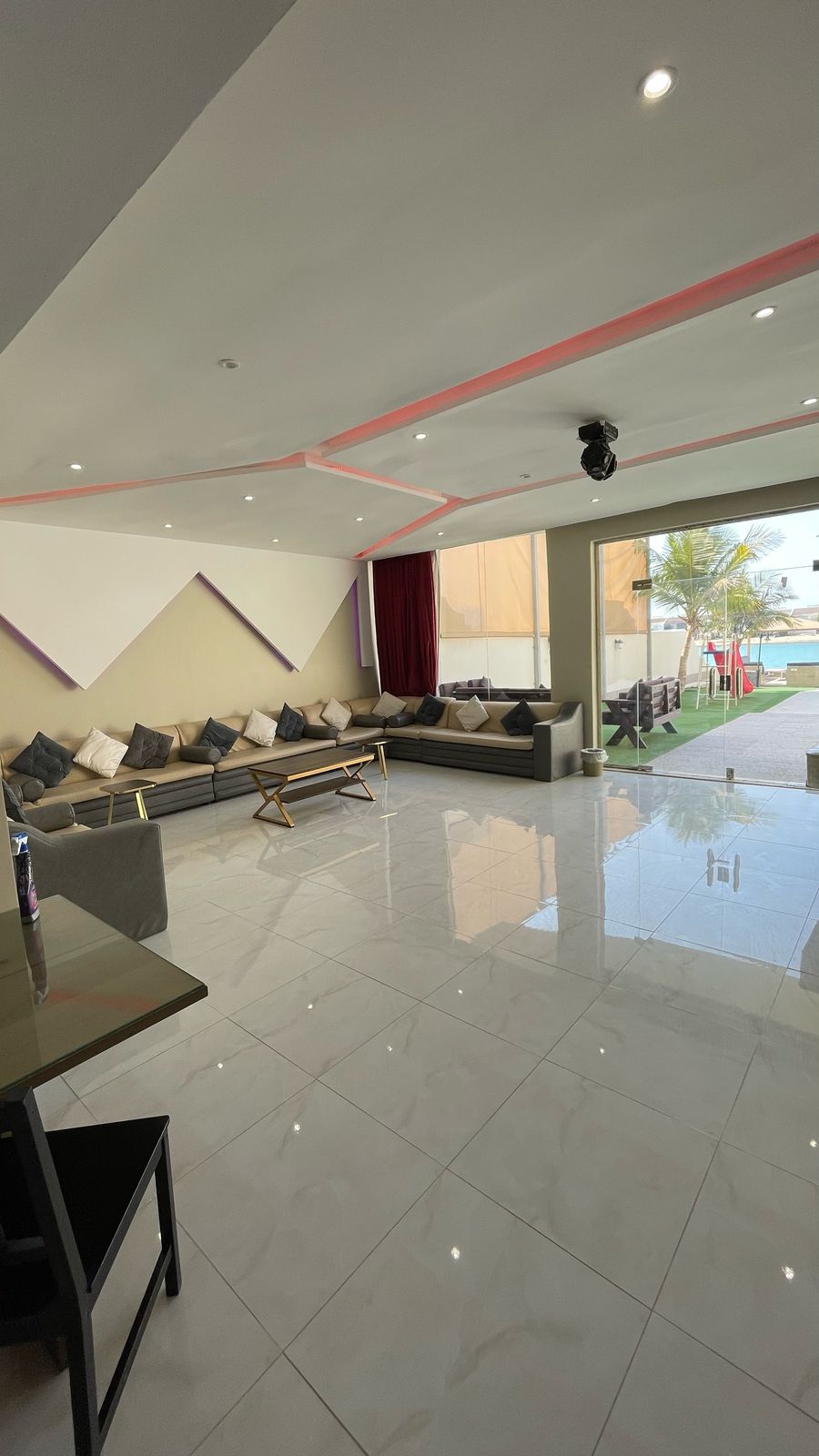 *فيلا هابي ييتش 17 * مكونه من : - 6 غرف نوم من ضمنهم غرفه بالدور الارضي لكبار السن. - غرفة خادمه مع دورة مياه. - مطبخ مجهز بجميع الادوات الاساسيه. - مسبح خاص مسور . - شاطئ رملي و خاص. - جلسه خارجيه على البحر. - سماعات وليزر وتلفزيون سمارت. - طاولة بلياردو. - مروش خارجي. - كراسي تشميس. - اسرة اطفال. - العاب اطفال. *ملاحظات* - لايوجد غرفة سائق. - لايوجد سخان في المسبح.