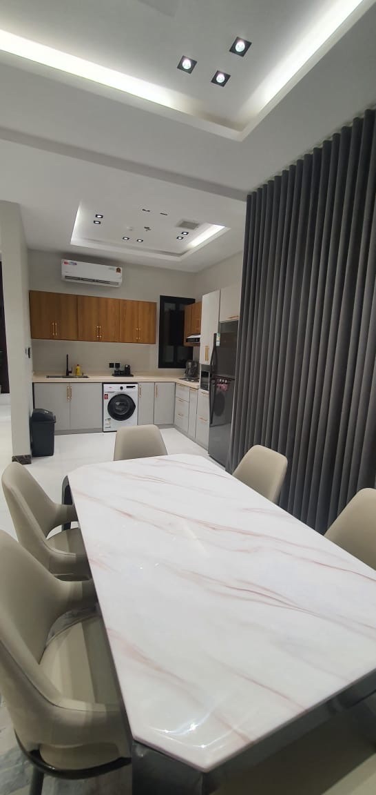شقة عائلية واسعة بعدد ثلاث غرفه نوم ب 7 اسره مع غرفه مجلس مستقل.